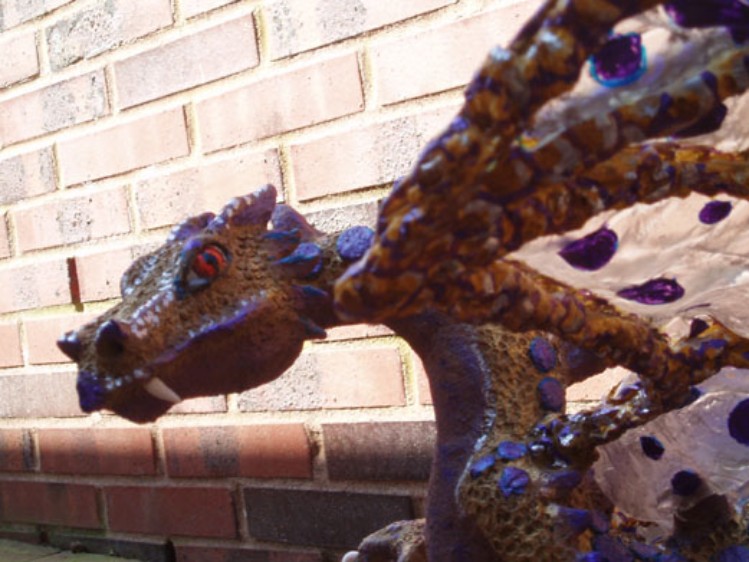 Bei den Drachen der Lüfte wollte ich unbedingt durchscheinende Flügel, daher habe ich zusätzlich zum Körper aus Ton mit einem Materialmix aus Seide, Stoff, Glasfaser, Draht, Knetmasse und Epoxyharz gearbeitet.
